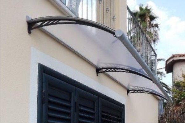 ✔️Pensiline su misura da esterno in acciaio e policarbonato, anche trasparenti, modulari per finestre, ingressi uffici, case e hotel, pensiline per portoni, sopra porta, sottobalconi.